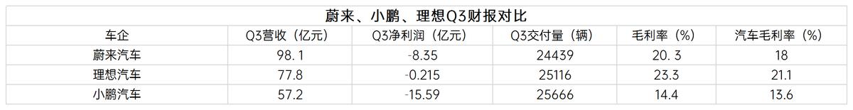 今年三季度,蔚小理各自的财报显示,蔚来整车平均售价在43万元左右;理想唯一一款车型理想ONE为33万元;小鹏两大在售车型中,P7为20万元左右,G3维持在20万元以内。小鹏在价格上的回旋余地无疑小于另外两家。