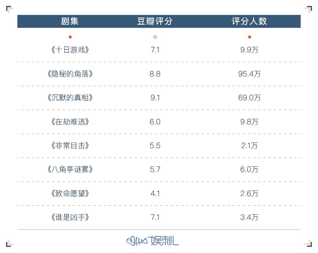 从豆瓣评分来看,《谁是凶手》在观众心中仍不够出挑,没能成为照亮迷雾剧场的那道“光”。