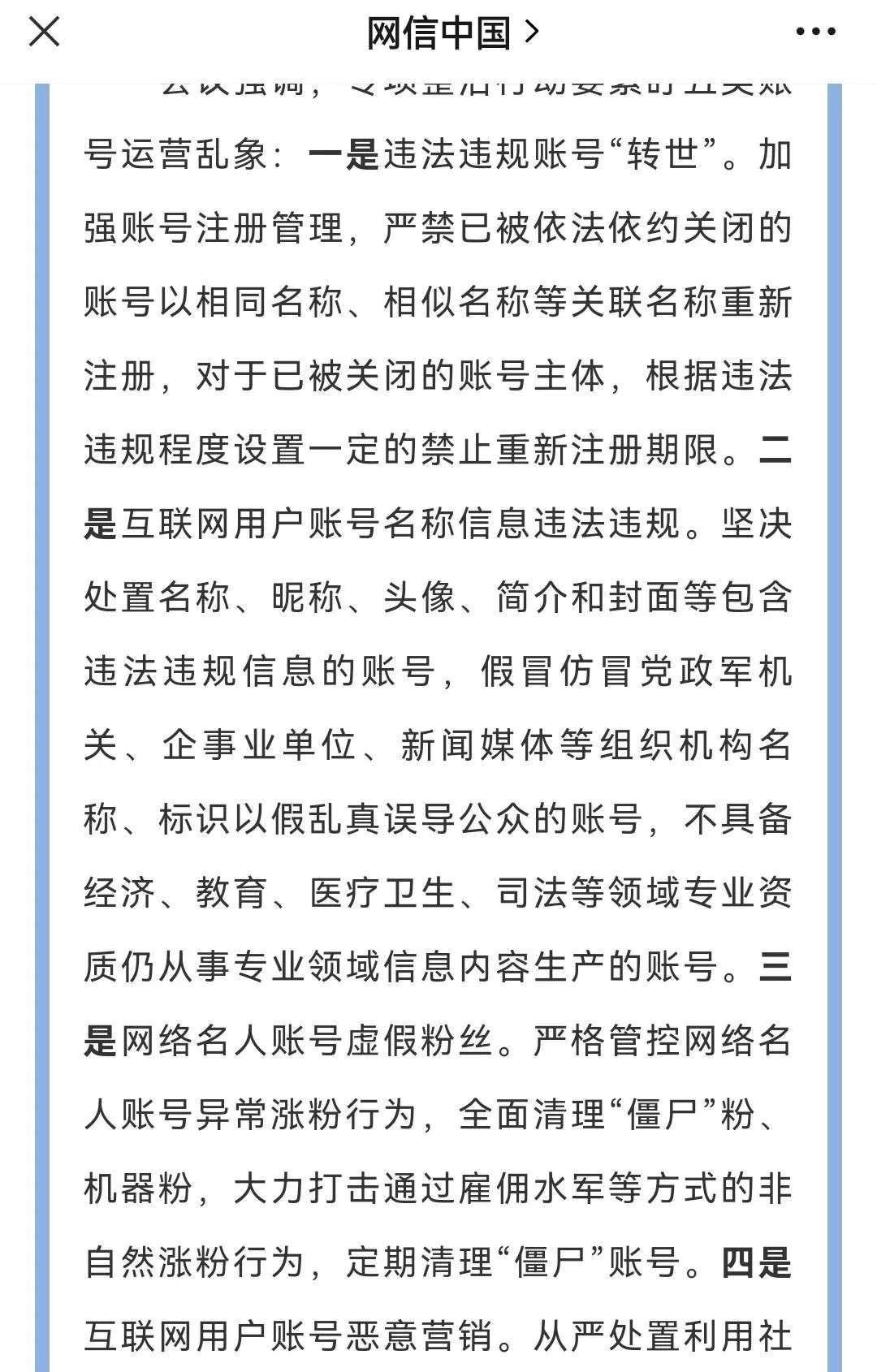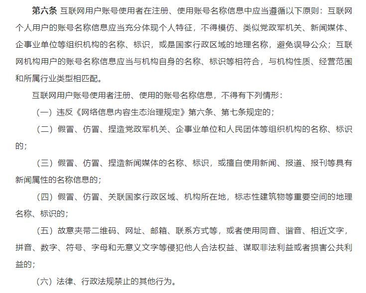 今年10月,国家网信办开启“清朗·互联网用户账号运营乱象专项整治行动”,集中整治五类账号运营乱象。其中包括互联网用户账号名称信息违法违规。