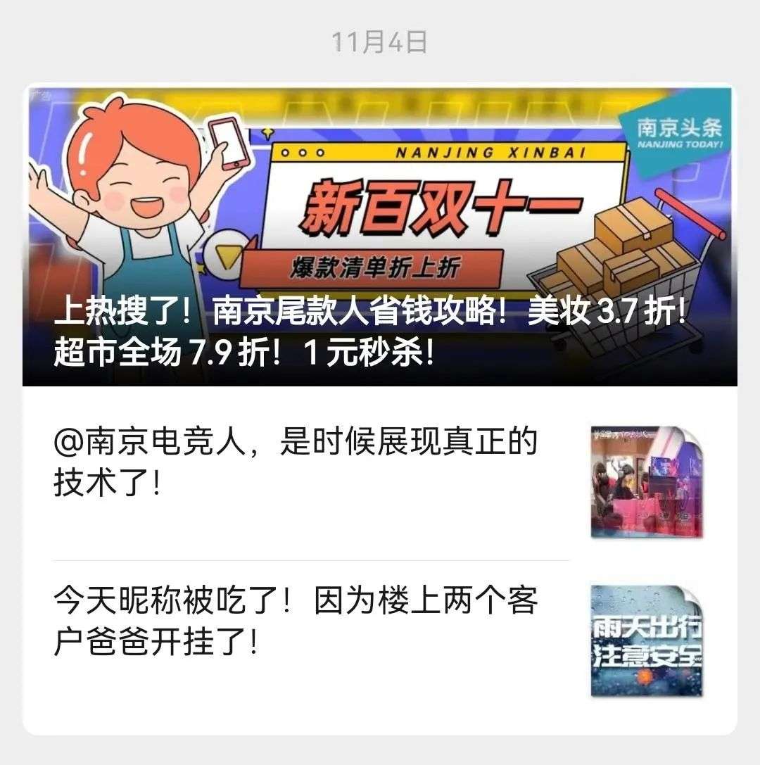 作为“南京头条”所在的本地公众号事业部负责人,榴莲的第一反应是焦虑。“我当时心想完了,我们的广告是不是要凉了……”