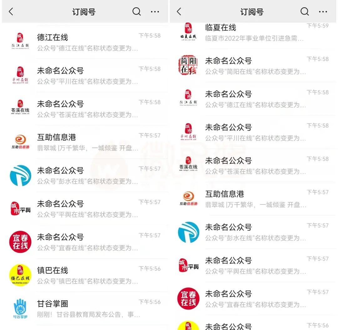 近期,不少网友发现关注列表中的地方号有许多变成了“未命名公众号”,原名称已经被清理。