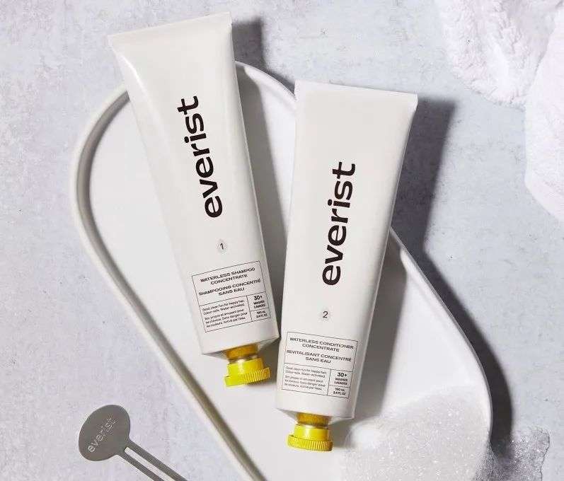 除了大集团之外,一些小众品牌同样基于“无水”理念进行创新。比如,加拿大的初创品牌Everist于今年10月份推出了无水沐浴露浓缩液,这是继该品牌在无水浓缩洗发水和护发素之后的一大新品。