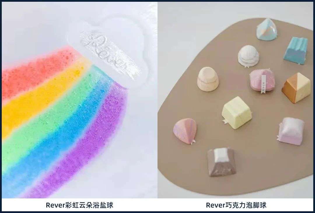 由于国内受众人群基数并不大,这一品类仅仅在社交媒体上活跃了不久,热度便逐渐消退。国内也有品牌推出浴盐球,比如,POLYVOLY保利沃利旗下的洗护品牌Rever,曾经推出一款彩虹云朵浴盐球,入水后会形成一条彩虹拖尾,产品的颜值再加上满满的泡澡仪式感,使其一度成为网红单品。