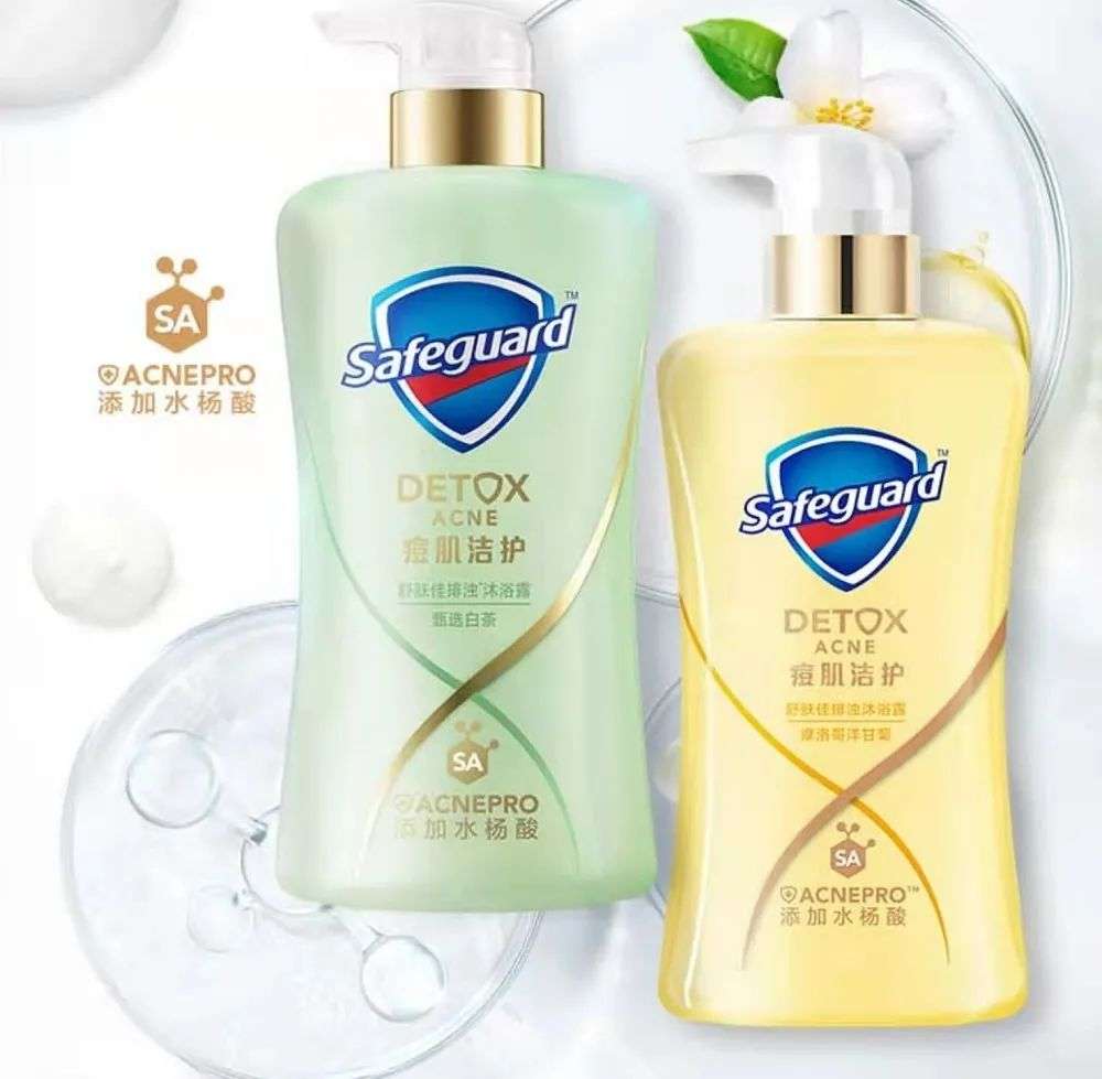 宝洁旗下的洗护品牌舒肤佳曾推出祛痘洁面沐浴露,其中包括洋甘菊、白茶和积雪草三种香型,主打1.7%的高纯度水杨酸成分,并且宣称“使用高端洁面配方”,可用于面部清洁。