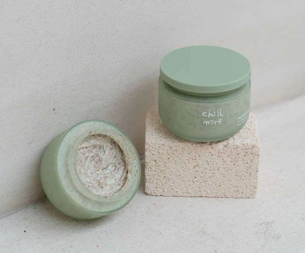 Chillmore的香氛磨砂膏中使用了芬美意香精香料公司调制的“茶歇”香型,前调为柑橘、香柠檬、鼠尾草,中调为茶香,后调则以龙涎香、麝香等木质香为主。该产品中添加了植物角鲨烷、牛油果树果脂、澳洲坚果籽油等天然油脂类成分,以及两种粒径的杏籽粉、水合硅石等磨砂颗粒,产品售价139元/200g。