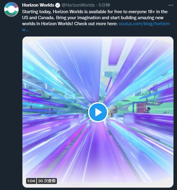 12月9日,Meta宣布,公司旗下的VR世界“Horizon Worlds”正式向美国和加拿大的18岁以上人群开放。
