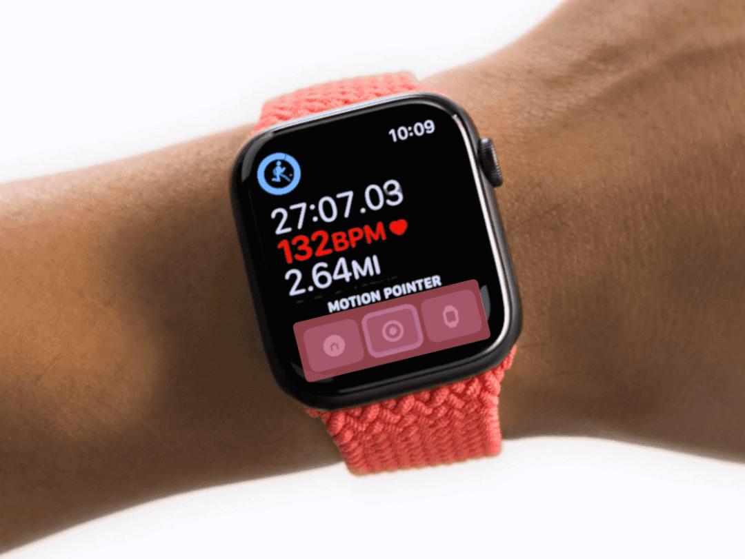 这个问题终于在今年得到了解决——尽管是通过一种「曲线救国」的方式。在 watchOS 8 中,Apple 将多种新的「辅助功能」带到了 Apple Watch 上,其中就包括 iOS 用户熟悉的「辅助触控」。