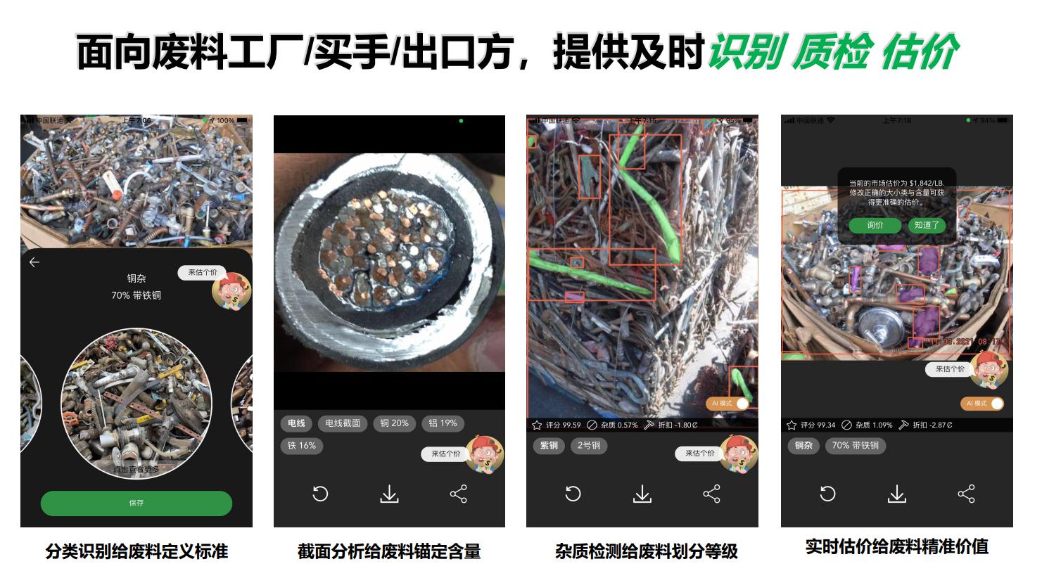 谭天告诉36氪,自己自2016年起就开始收集和标注废料数据,“目前平台拥有全球最大的废料数据库”。经过测试,平台目前针对有色金属品种下的数百种废料识别与估值准确率都超过90%。