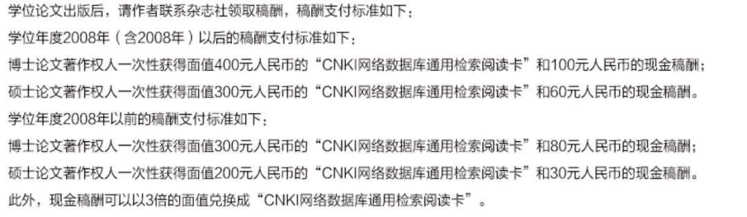 目前,中国知网的学位论文稿酬标准仍是依据该通告。