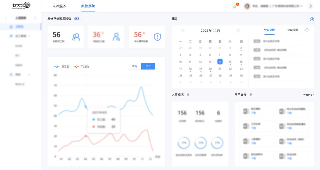 在劳资模块中,SaaS风控系统把控了员工从招聘、入职资料、入职手续、试用期转正、任职、离职等各个风控节点。当某个节点出现风险时,系统会智能地提示并指引HR修正;在买卖交易这一过程中,SaaS风控系统以解决企业交易合同合规化管理、智能提醒交易方存在风险为主要功能。同时,提供以法律防控为主的进销存管理系统(包括采购、订单、出入库),能解决企业生产方面的法律风险;而知识产权方面则以管理企业的软著、专利、商标等,在逾期、被侵权现象发生时,则会进行智能提示。