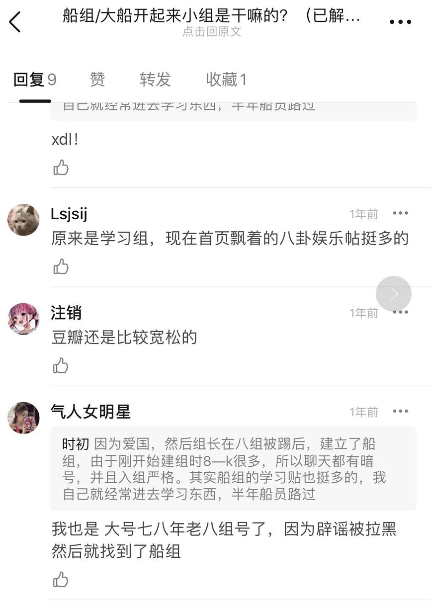 对于这些受众来说,豆瓣小组让他们有了自己的小天地。但对于很多书影音老用户来说,这个社区确是降低平台格调的存在,尤其是“豆瓣鹅组”和各种CP组。作为娱乐圈八卦的策源地,无数个秘闻从这里诞生,并通过微博传播给上亿“吃瓜群众”。