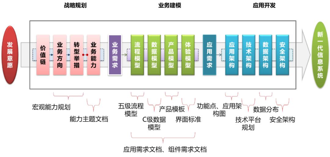 整体看,企业架构的设计既包括对了对企业的愿景、战略、业务、组织的分析,有包括基于业务分析而进行的应用系统设计分析,是业务与技术相连接的设计思维。但是,企业架构也有一个问题,就是大多数企业架构理论都没有很好地给出从业务分析到应用设计的衔接方法。