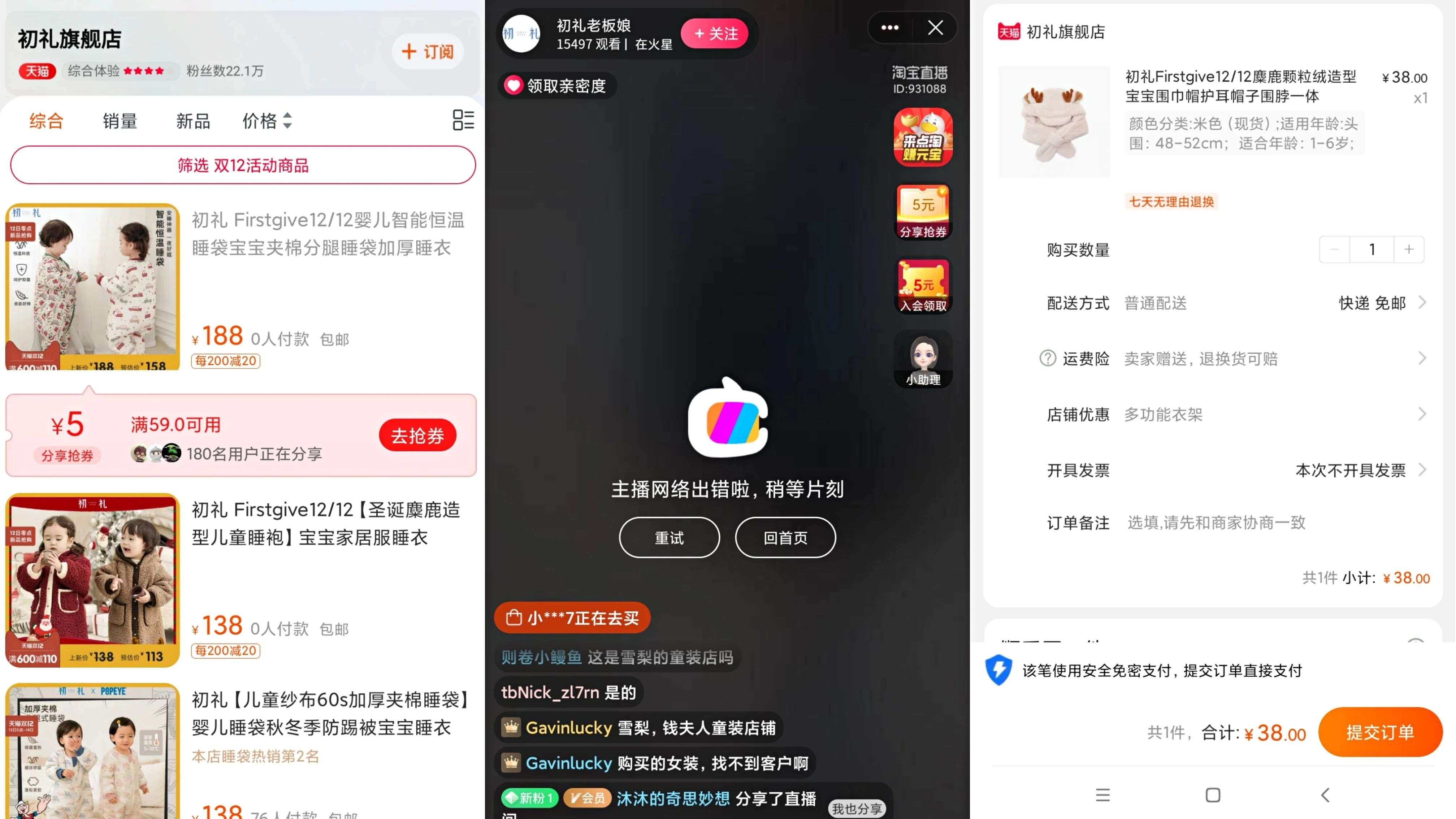 “初礼旗舰店”在12月12号晚也开启了直播,但直播一直显示黑屏,仍然有多数网友在线,发送弹幕询问该店铺与雪梨关系。店铺在架商品也可正常购买。据淘数据显示,12月11日,该店铺销售额为2367.82元,而11月11号的销售额为277141.02元。