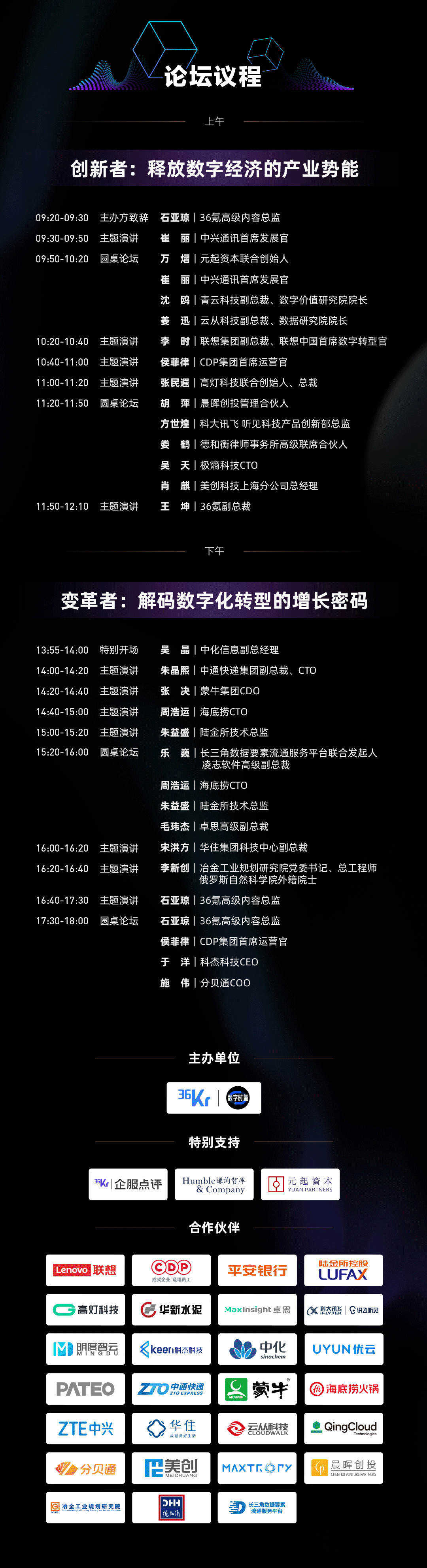 今天我们邀请到的嘉宾,都是我们前面提到的中国数字化创新领域的1%。在这些卓越的数字化创新的公司和人身上,我们深刻的体会到——这个时代是如何变得更好的。这恰恰是36氪、36氪的读者都最希望看到的——那些推动未来向上的力量。