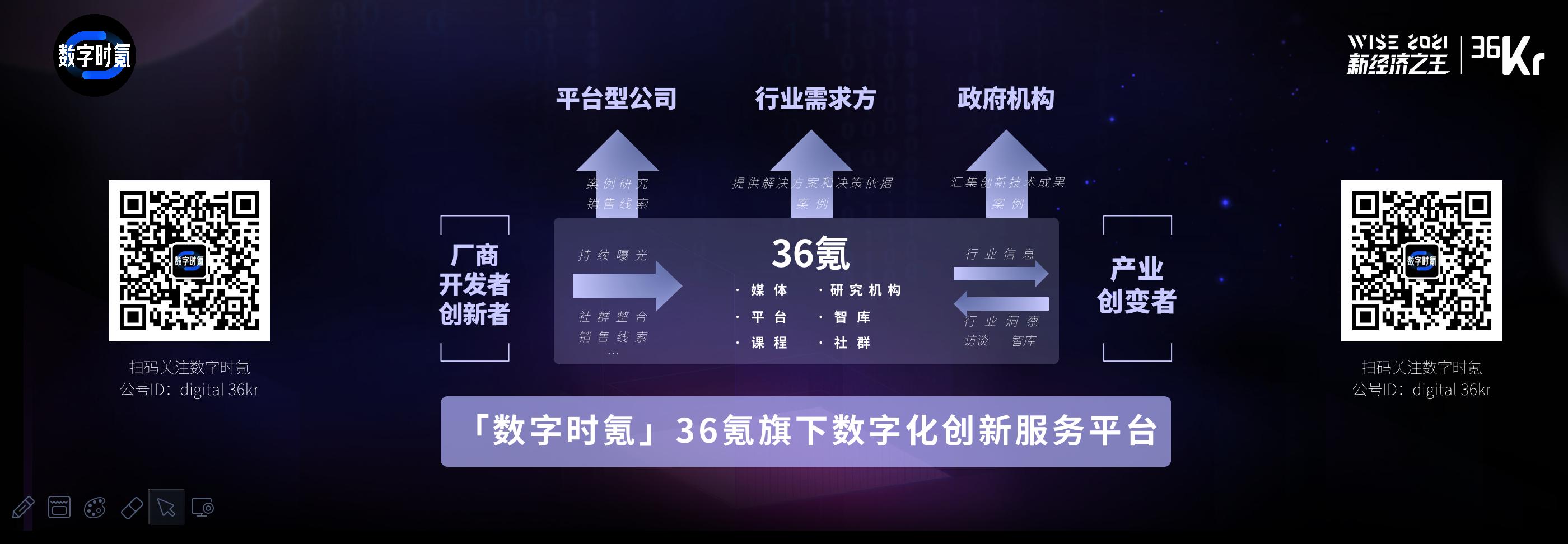 因此,今年我们成立了一个新的业务,也是我们今天大会的主办方【数字时氪】,我们希望在36氪平台上为产业提供数字化创新的解决方案。