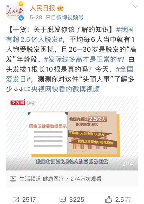 中国超2.5亿人面临脱发困扰,男生比女生多一倍
