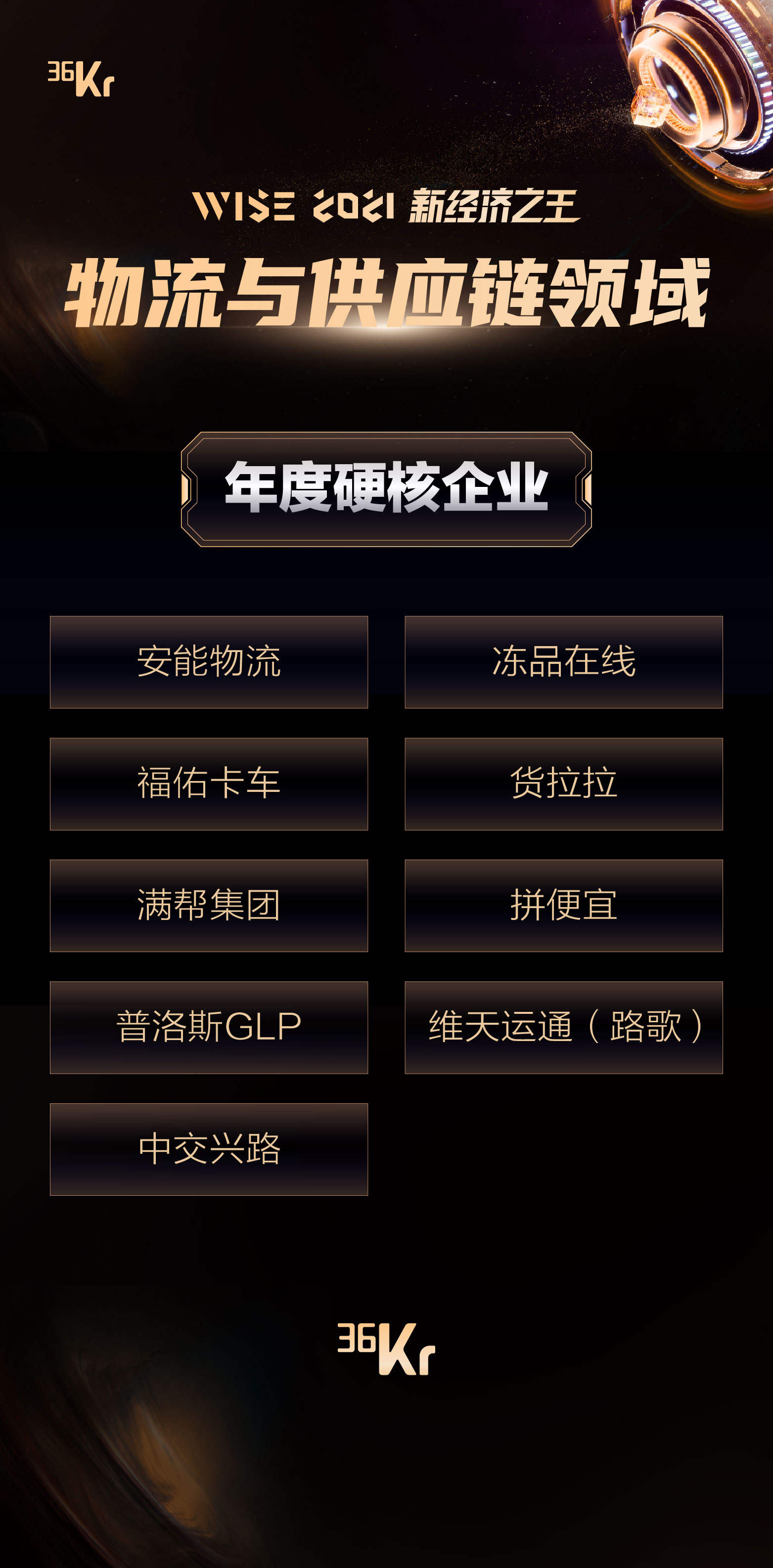 WISE 2021 新经济之王物流与供应链领域「年度硬核企业」、「年度新势力企业」