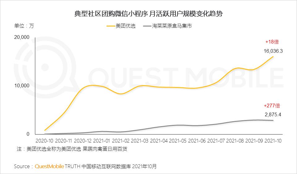 2.3 社区团购基于订购和线下自提等的特点,降低履约成本,为用户生活带来实惠,美团优选、淘菜菜等微信小程序流量近一年提升显著,平台受到新一线及二三线城市用户的青睐