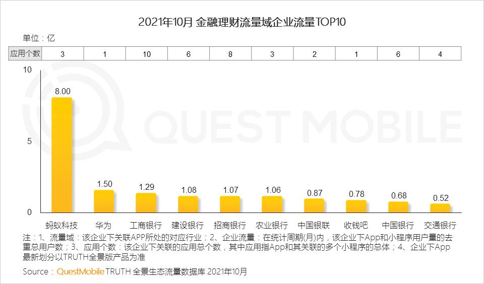 5.1 金融理财行业,蚂蚁科技凭借支付宝斩获8亿流量,银行系多产品布局,工商银行、建设银行、招商银行及农业银行均突破亿级大关