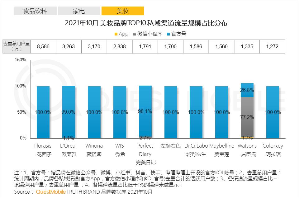 3、美妆品牌私域流量集中在KOL官方号,通过内容平台加深品牌宣传及用户触达,吸引更多年轻女性用户的关注