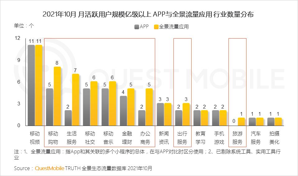 1、移动购物、生活服务、办公商务等行业获得更多全景流量加持,实现亿级以上月活跃用户规模应用数量的提升