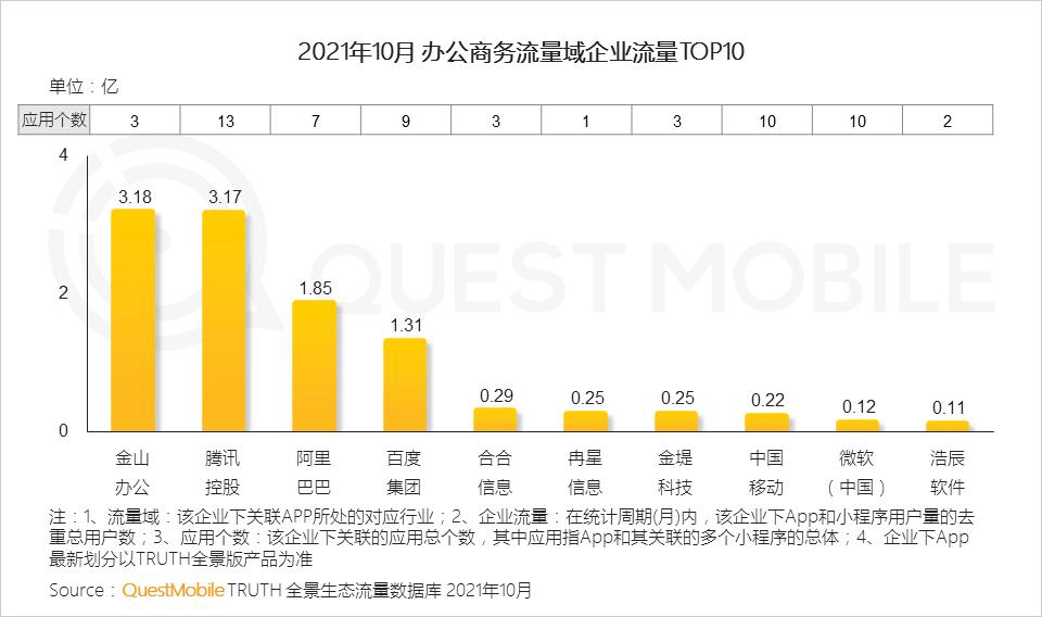 4.1 办公商务行业,金山办公多年行业深耕收获超3亿流量;腾讯在该领域多应用布局投入下亦收获同体量活跃用户规模