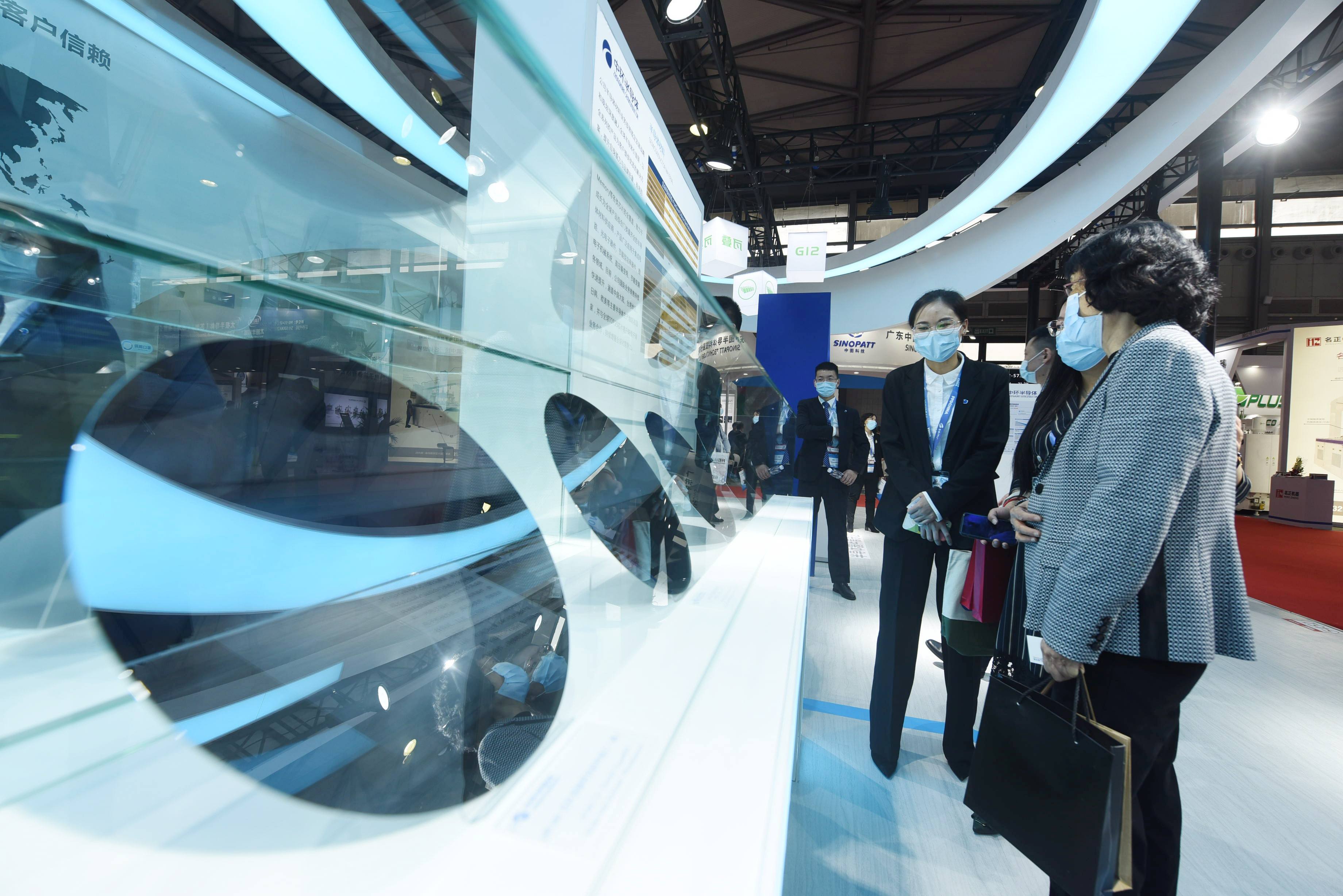 2021年3月17日,参观者在观看国产12英寸(300mm)的单晶硅片