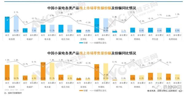 奥维云网(AVC)数据显示,2021年7-9月份小家电线上市场零售额分别为13.3亿元、17.4亿元和21.4亿元,与去年同期相比增速下降分别为-11.2%、-3.0%和-8.0%。