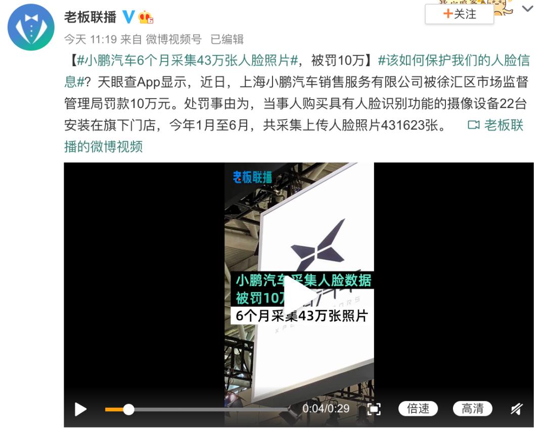 小鹏汽车摊上事儿了,装AI摄像头,违规搜集面部数据,被罚10万。