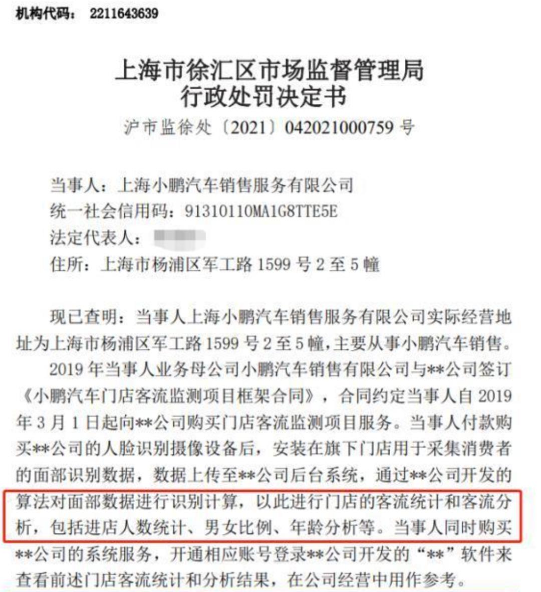 事件的起因是2019年3月份,小鹏汽车旗下上海小鹏汽车销售服务有限公司,向一家名为悠洛客的人脸识别公司购买了门店客流监测项目服务。