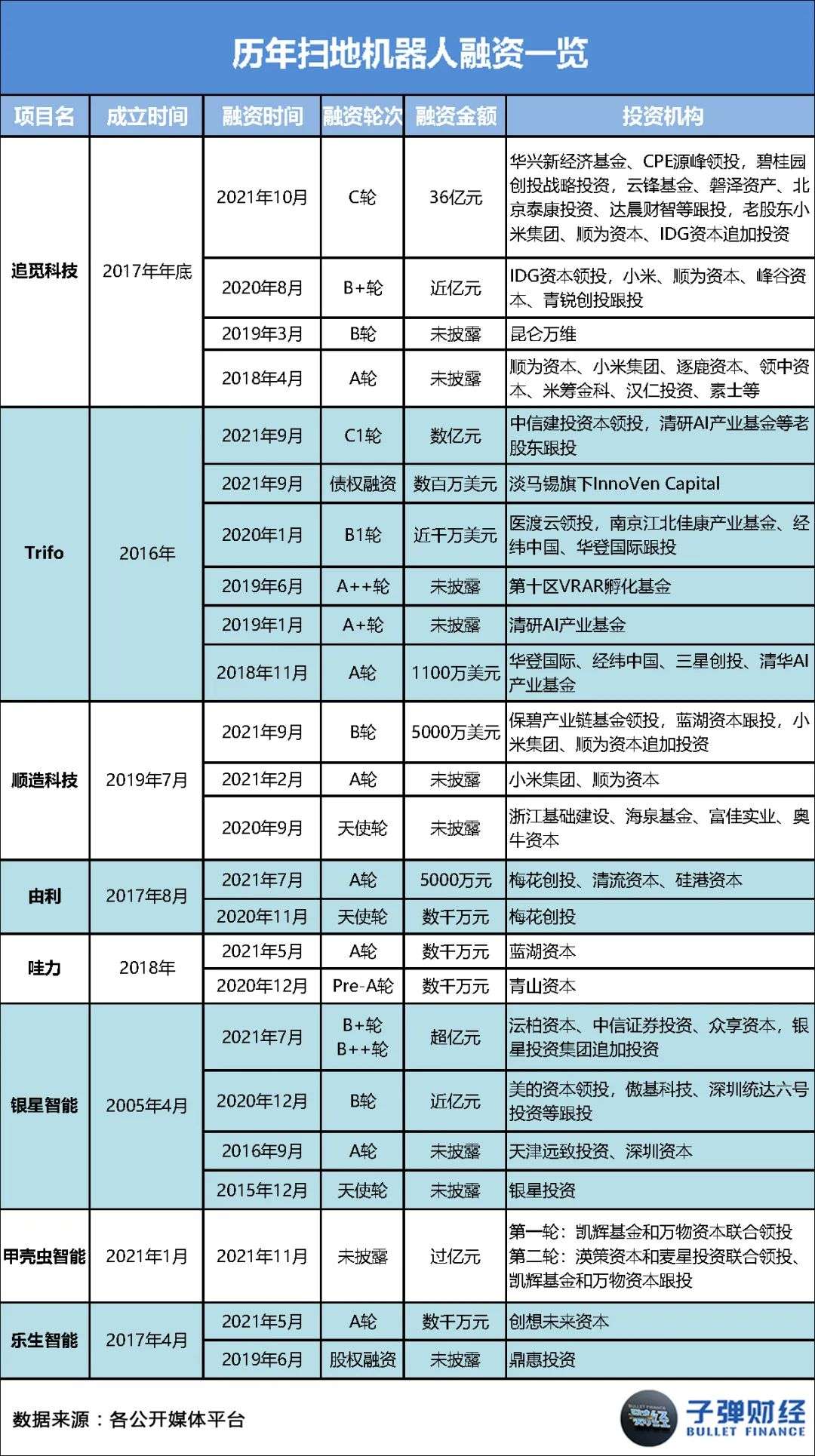 据「子弹财经」了解,今年以来,扫地机器人行业至少发生了10起投融资事件,几乎每个月都有玩家获得数千万级融资。