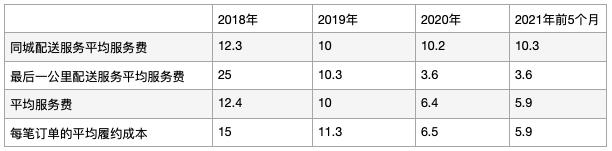 其招股书显示,顺丰同城每笔订单的平均履约成本在2020年之前(包括2020年)一直高于订单平均服务费,直到2021年前5个月订单平均服务费才与履约成本持平。