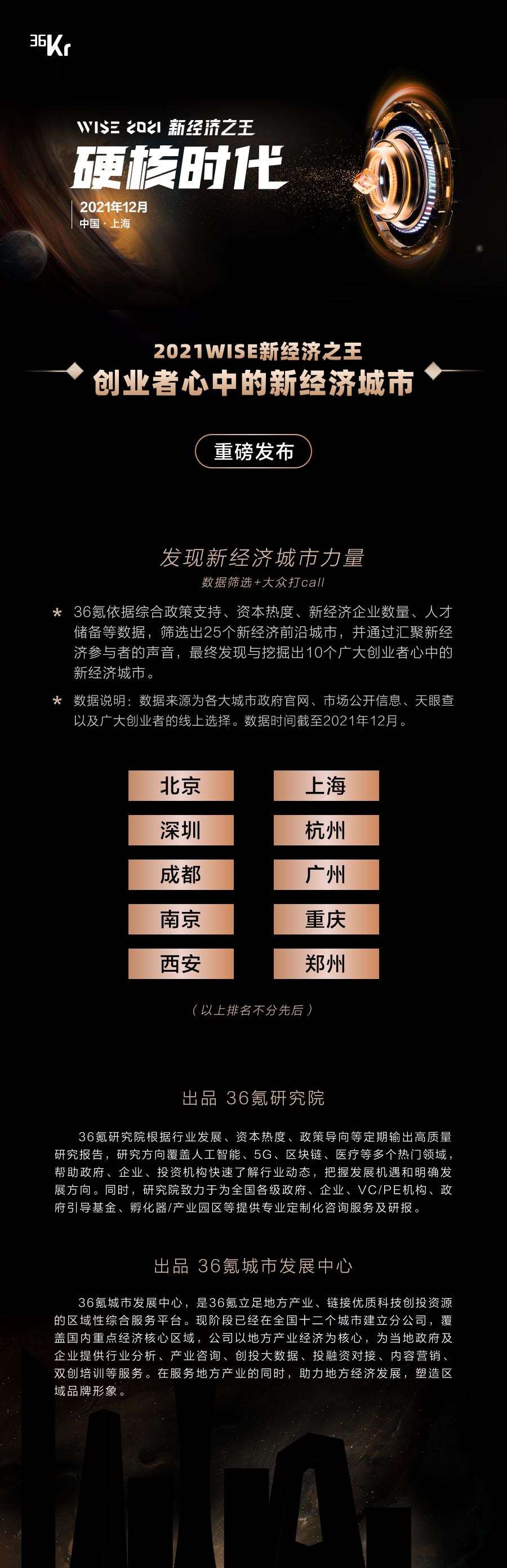 因此,36氪从综合政策支持、资本热度、新经济企业数量、人才储备等维度出发,汇聚新经济参与者的声音,最终发现与挖掘出「创业者心中的新经济城市」。