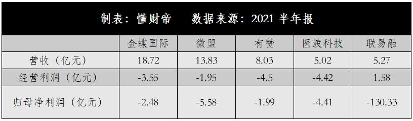 因此,本文选取了金蝶国际、微盟、有赞、医渡科技、联易融五家公司作为分析标的,将尝试探讨以下三个问题: