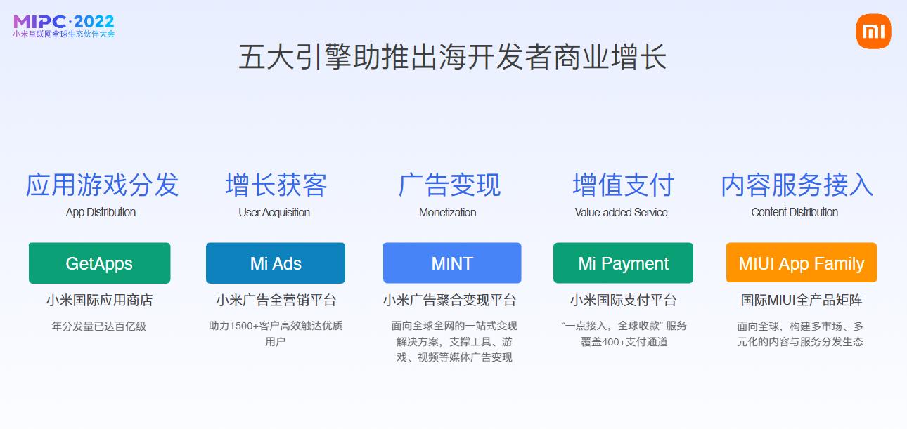 为此,小米国际互联网推出五大动力引擎:应用游戏分发、增长获客、商业化变现、增值支付、内容服务,帮助出海开发者在小米生态体系下获得全方位、更丰富、有效的资源支持,助力出海开发者达成商业增长目标,共建强大的互联网生态体系。