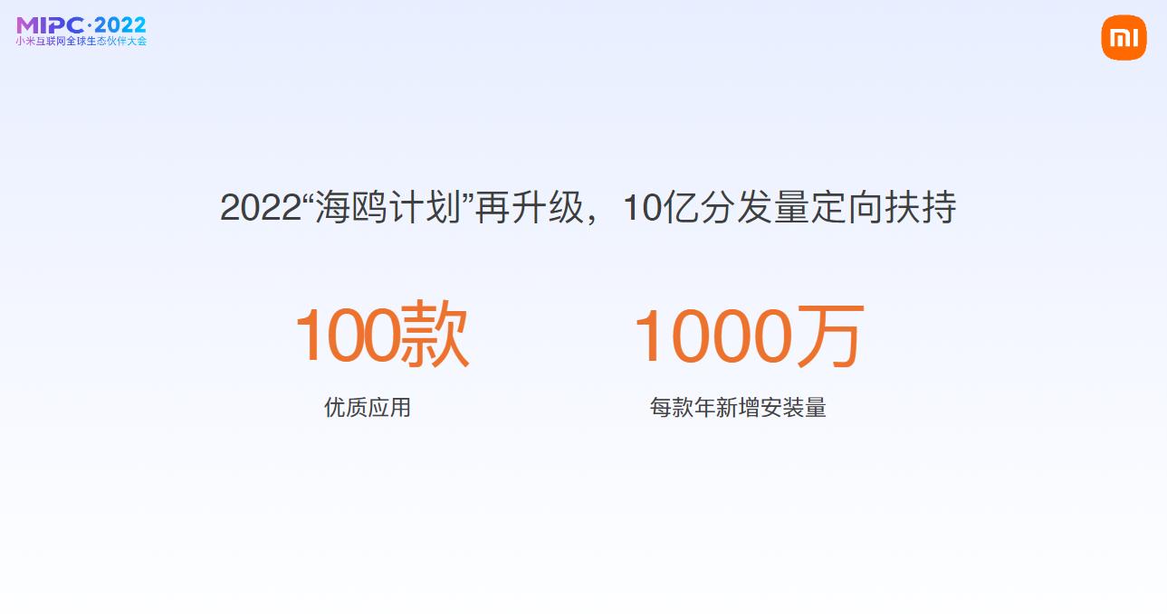 为了更好地服务出海开发者实现增长目标,GetApps于2019年推出“海鸥计划”,扶持优质应用。2022年,“海鸥计划”全新升级,小米将投入10亿分发量,扶持100款优质出海应用实现千万用户新增。