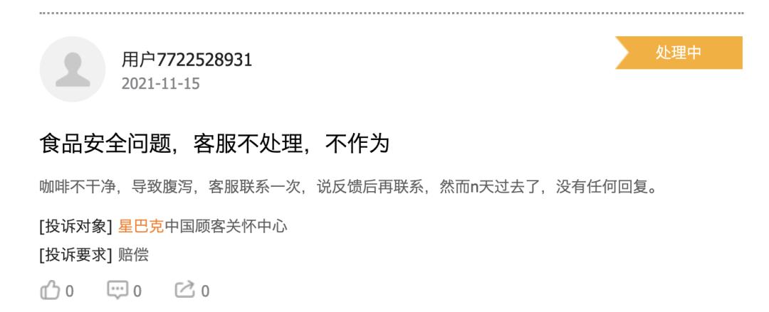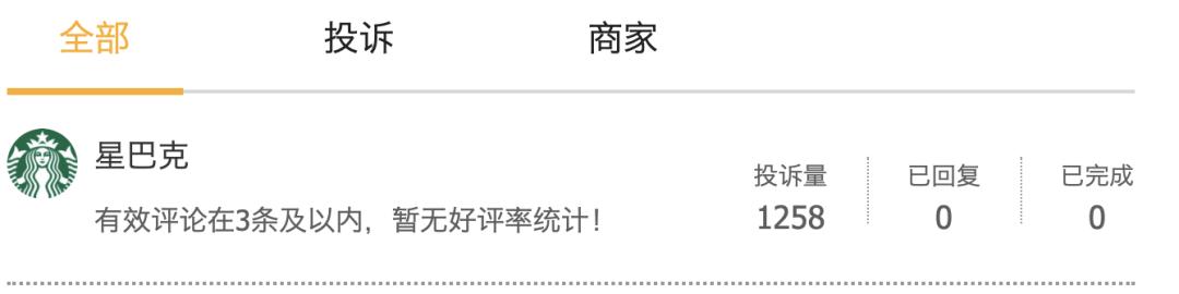 不过区别还在于,星巴克对于投诉帖的处理态度是,不作为。几家咖啡品牌中,只有星巴克的投诉回复为0。