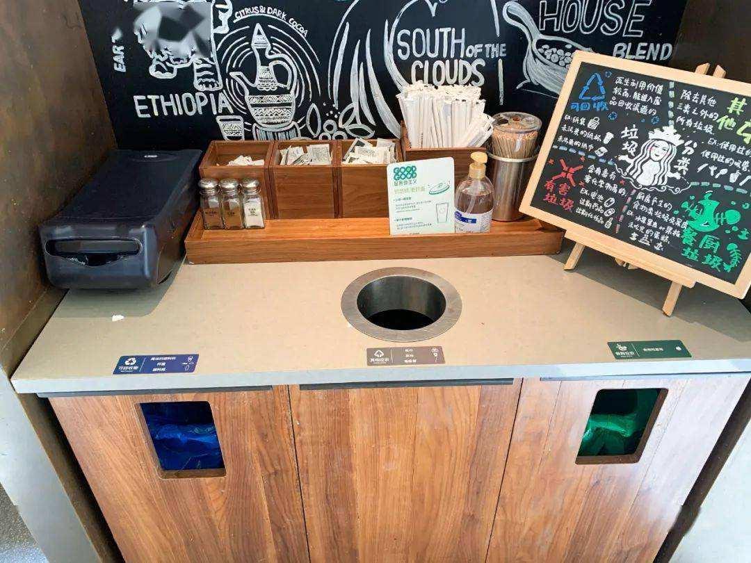 星巴克门店的三分类垃圾桶(图源@硬腿子)