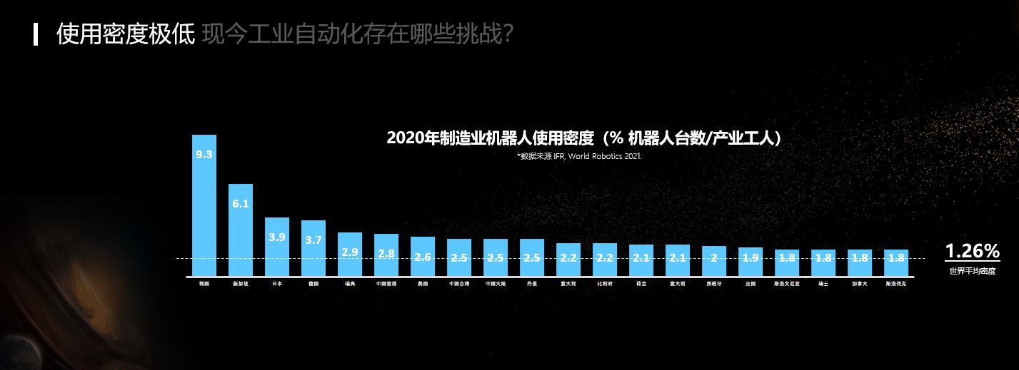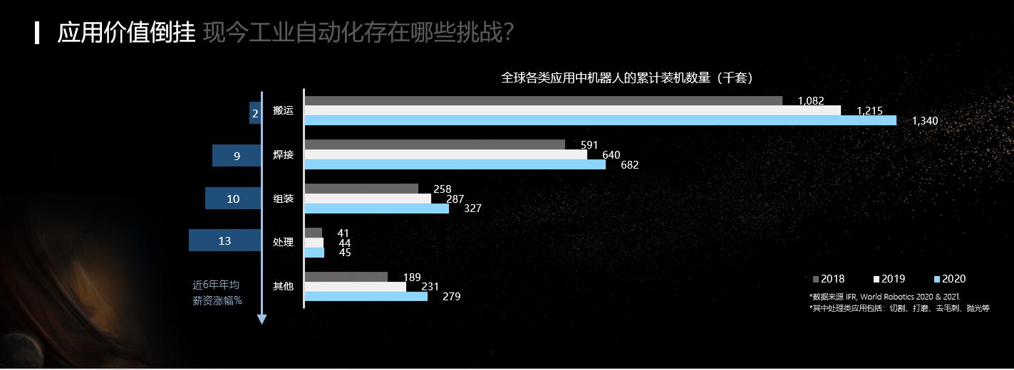 对于这些局限,如果映射到现在对于机器人应用最广泛的工业自动化的行业里面,会带来哪些挑战呢?这里面我们提供两组数据: