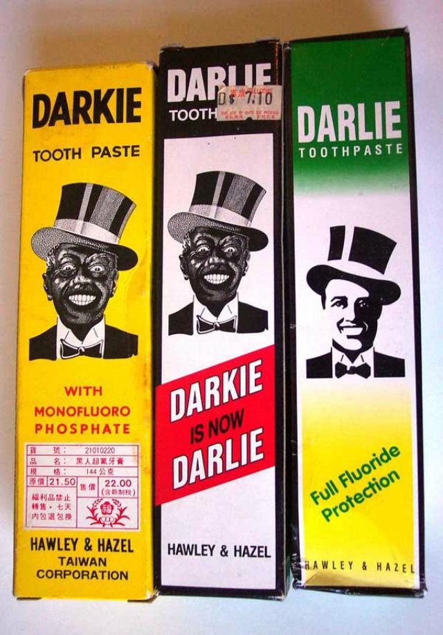 被高露洁集团收购后,黑人牙膏收到来自欧美客户大量的投诉,还一度上了禁止出口名单。1989年,为了顶住压力,高露洁集团不得不将品牌英文名从DARKIE(黑人)改为 DARLIE(达利),后来还将产品的黑人头像换成了去种族化的头像,风波才得以平息。