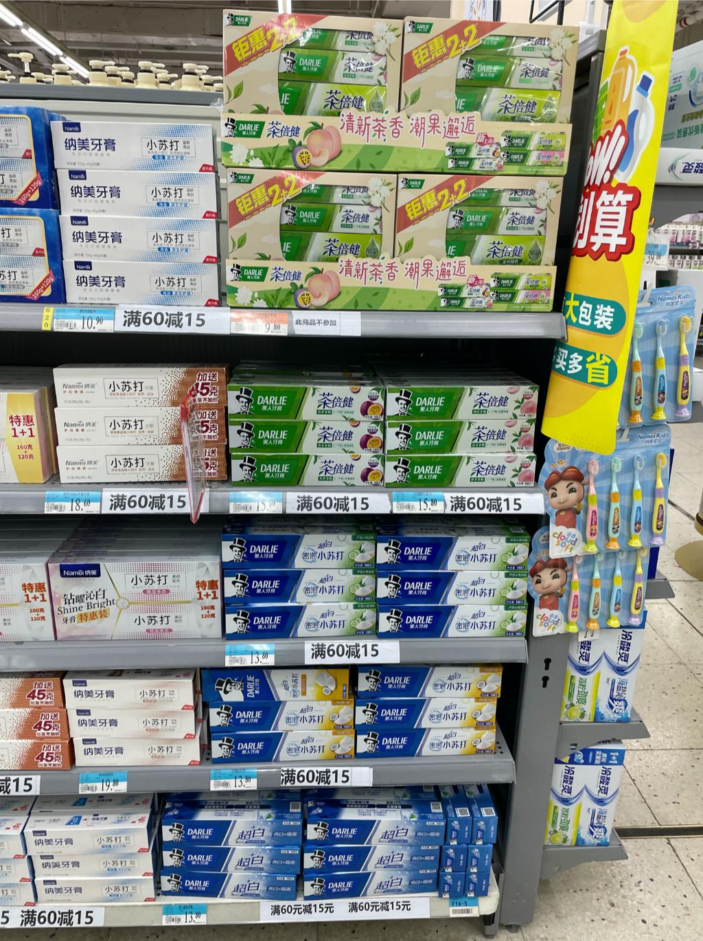 青眼今日走访武汉中百仓储、武商、沃尔玛等大型商超发现,黑人牙膏在线下销售并不理想,沃尔玛徐东大街分店导购员表示:“黑人牙膏厂家不够重视促销,整个武汉市的沃尔玛也总共才有3个促销员。”另外几家店的导购员几乎都反映牙膏品牌在疫情后都卖得不怎么理想,其中算云南白药销售最好。