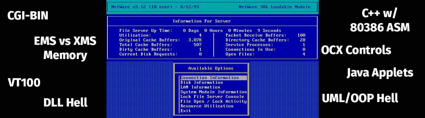 我学过 6510 汇编语言,我用静态 HTML 在 CGI-BIN 目录实现过网站,我在 80x25 的字符终端上创建过高级用户界面,我可以用 VT100 创建远程应用,而且我擅长把640K 内存的每一个字节都压榨干。这些都是我花了好几个月才完善的技能,正是因为具备了这些技能才让我从公司那里拿到了合理的报酬。但这些技能在2021年不值一文。