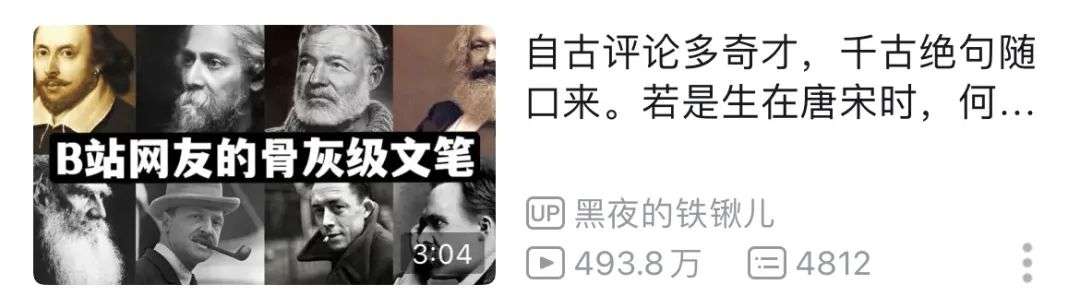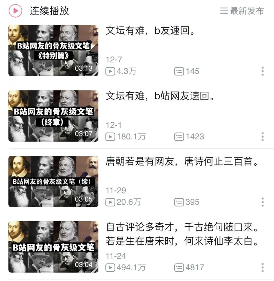 他挑选了一些极富文学性的B站评论,做成精华评论合集视频,并将其命名为“骨灰级文笔”。