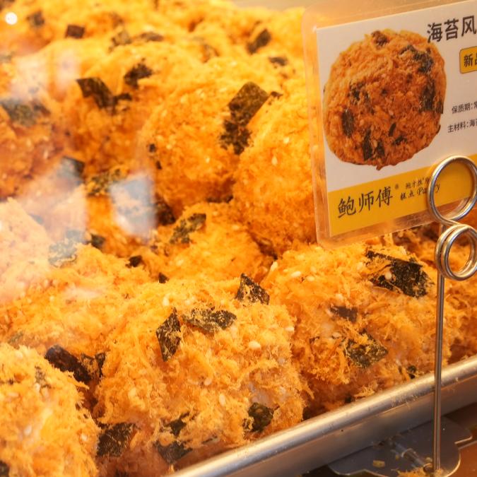 鲍师傅最有名滴当然是各种肉松小贝啦。这家店一共出售可可、鸡丝、蟹黄、海苔、鳕鱼5种口味的肉松小贝。还有麦粉、蛋挞、栗子酥等时令网红小点。