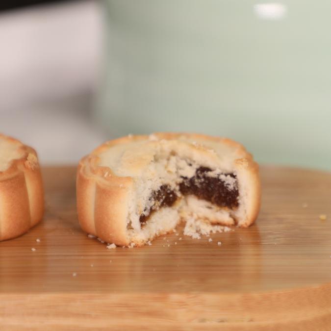 绿豆皇 (57.6元/kg,每块约4块钱)这款点心倒是还不错,有着绿豆酥的口感,蛋黄酥的味道。表皮酥脆但不涩口,内馅不干不腻,初入口是绿豆的清香,咀嚼之后又有一丝蛋奶的柔和气息,口感层次丰富。唯一的不足是余味有一些豆腥。