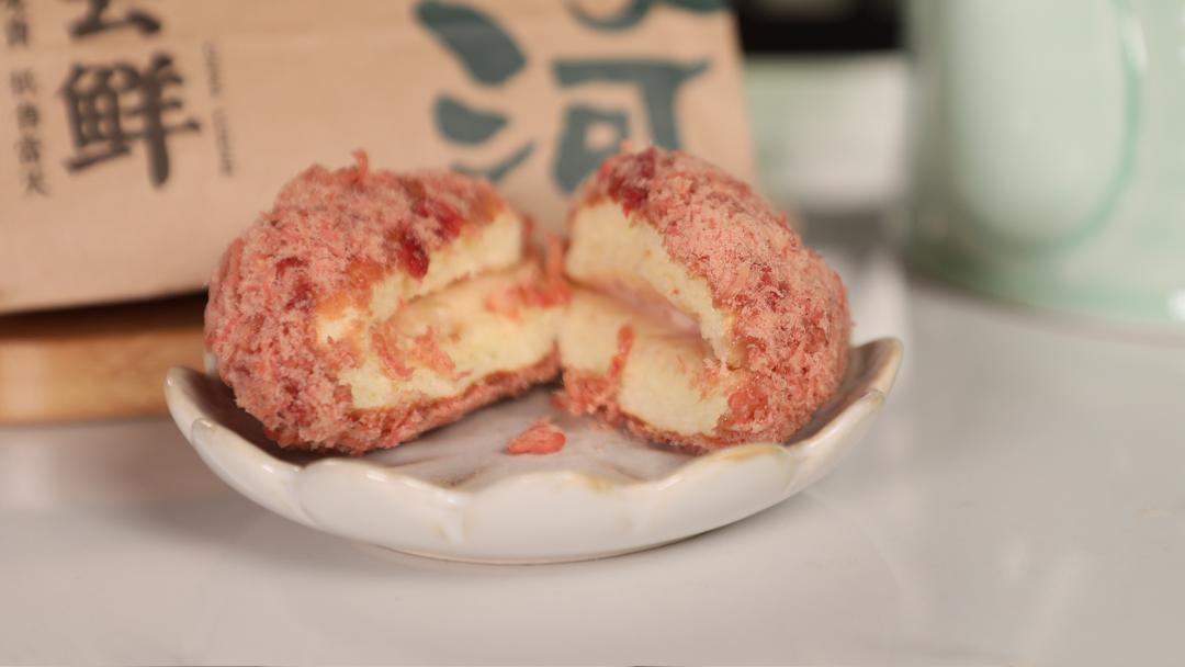 草莓松松小贝 (57.8元/kg,每只约4块钱)自从鲍师傅火了以后,基本上每家点心店里都会搭着做点肉松小贝。泸溪河也算是别出心裁,草莓松松小贝粉粉嫩嫩视觉上很可爱,他的每一种原料分开吃都挺好吃的,但是草莓的甜和肉松的咸并不匹配,加之膏体比较干,整体又不完全好吃。