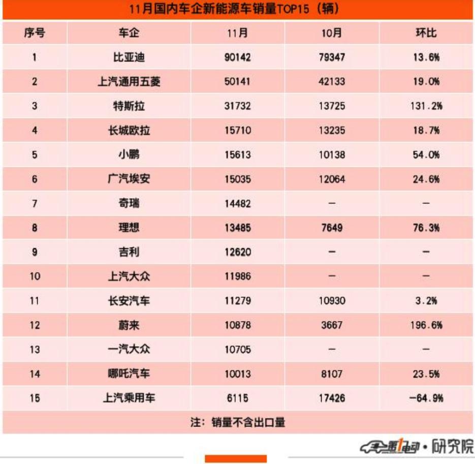而上汽大众、一汽大众也凭借ID系列电动车的热销,在11月份实现了销量过万的目标,并双双首次跻身新能源汽车销量榜前15。