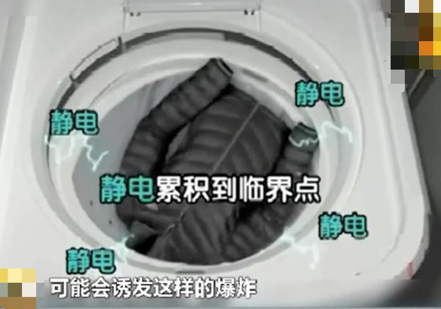 洗衣机里的衣服那么湿润,同时一直和洗衣机内壁接触,这种条件下静电很难积累。静电也不是羽绒服的专属特性——要是洗衣机里静电引起了爆炸,那化纤衣物岂不更成了危险品?以化纤的普及度,爆炸事件也早就不是千年等一回了。而且羽绒服也不是塑料袋做的,本身具有透气性。甩干的时候并不会和“手锤塑料袋”一样突然压缩空气导致爆炸。