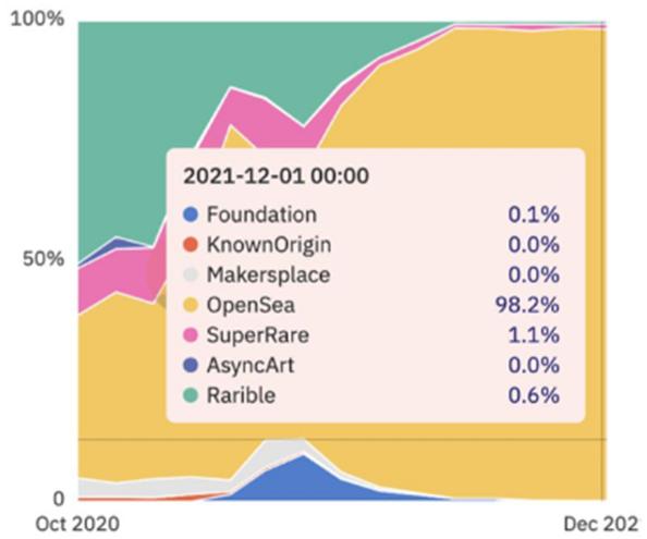 说到这里就出现一个问题了。目前NFT交易市场几乎被Opensea垄断了,这种“集中式系统”,对行业的发展肯定是不利的。
