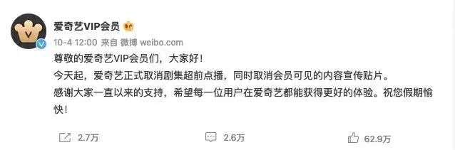 因此今年在爱奇艺的带领下,长视频平台纷纷取消了“超前点播”模式。